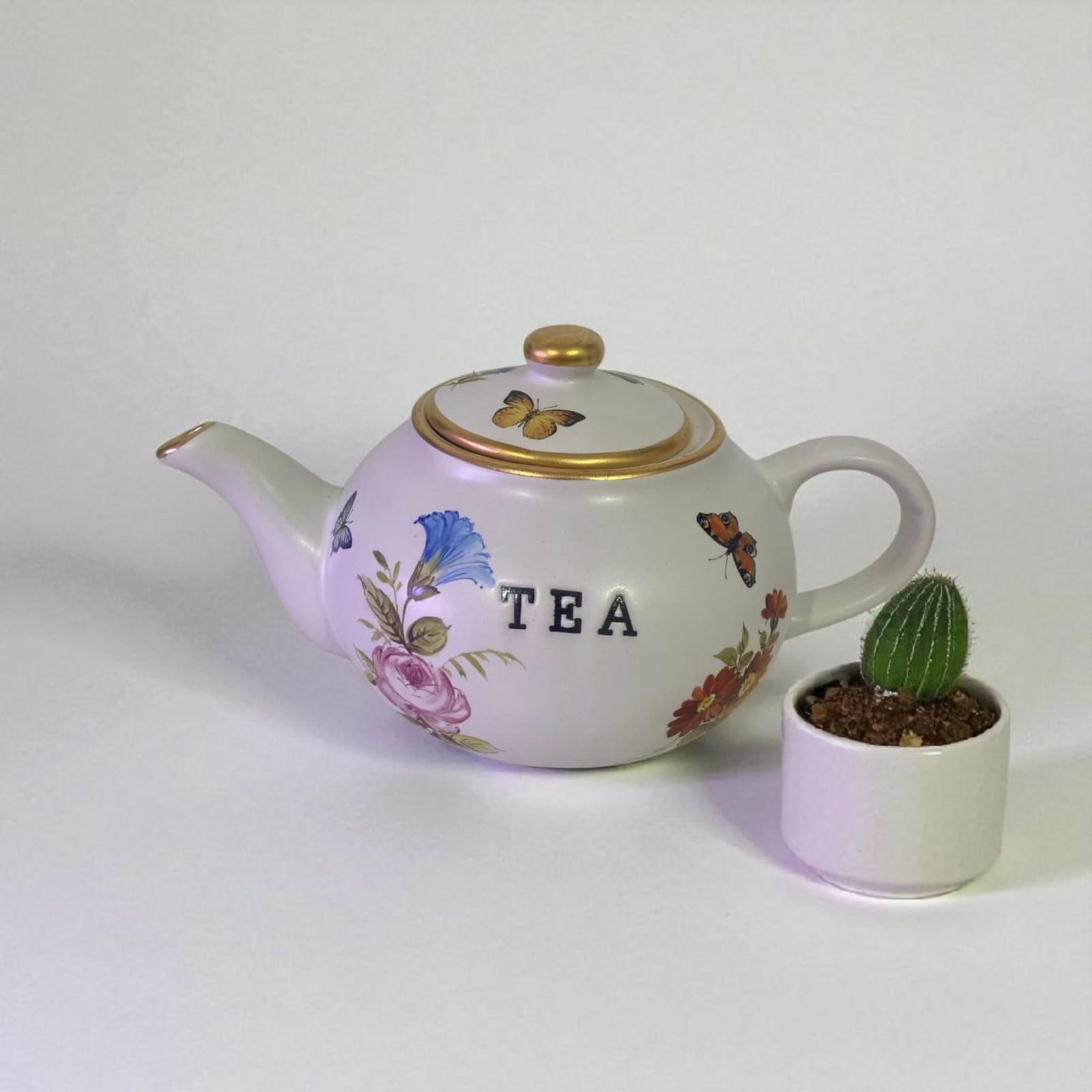 Uma peça única que une tradição, delicadeza e sofisticação. Esta chaleira de cerâmica branca Chanoyu é exclusivamente pintada à mão, trazendo o encanto das borboletas em cores vibrantes, que simbolizam transformação, leveza e beleza.